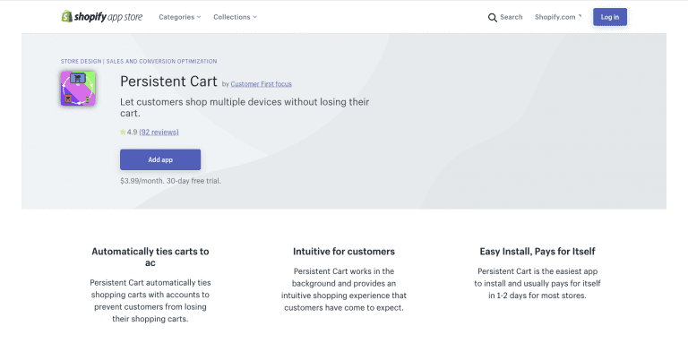 Persistent cart is an app that lets you allow your customers to shop seamlessly on multiple devices without losing their cart. If they add items to their cart on their desktop, these items will still be available in their cart on mobile.