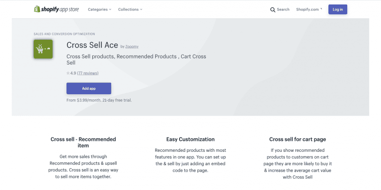 This app helps with cross-selling and upselling through product recommendations. You can do this on product pages, and even inside your shopping cart based on products your customers have added. If you prefer, you can even choose which products you want to recommend.