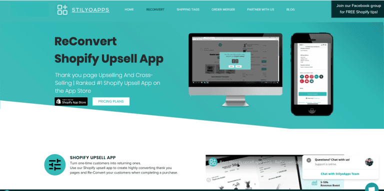 ReConvert helps you improve your store’s ability to upsell by showing product recommendations on your post-purchase thank you page. Their users see an average boost in revenue of 5-10%.