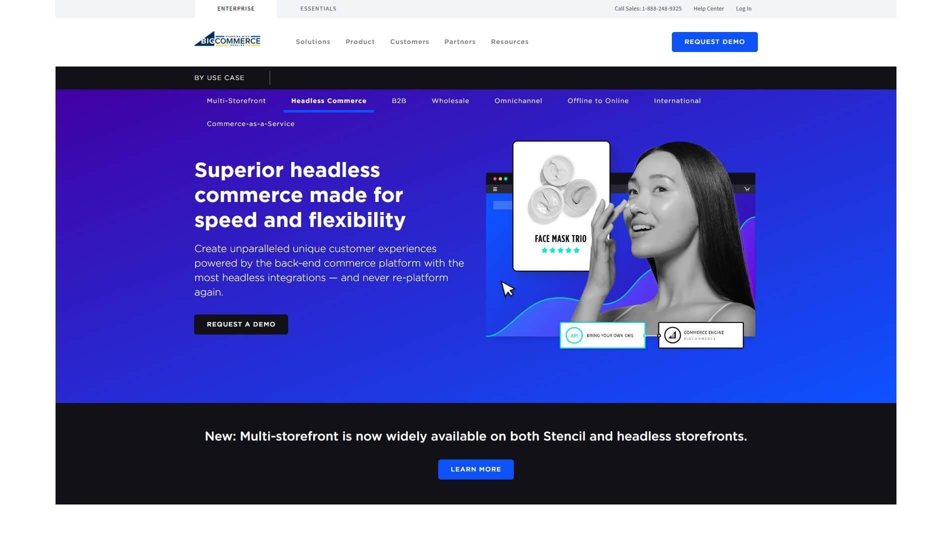 BigCommerce is a decent headless ecommerce platform for B2B businesses. It supports various frontend frameworks like Next.js and Gatsby.js and offers an open API architecture with REST and GraphQL endpoints which is ideal for building a headless storefront.