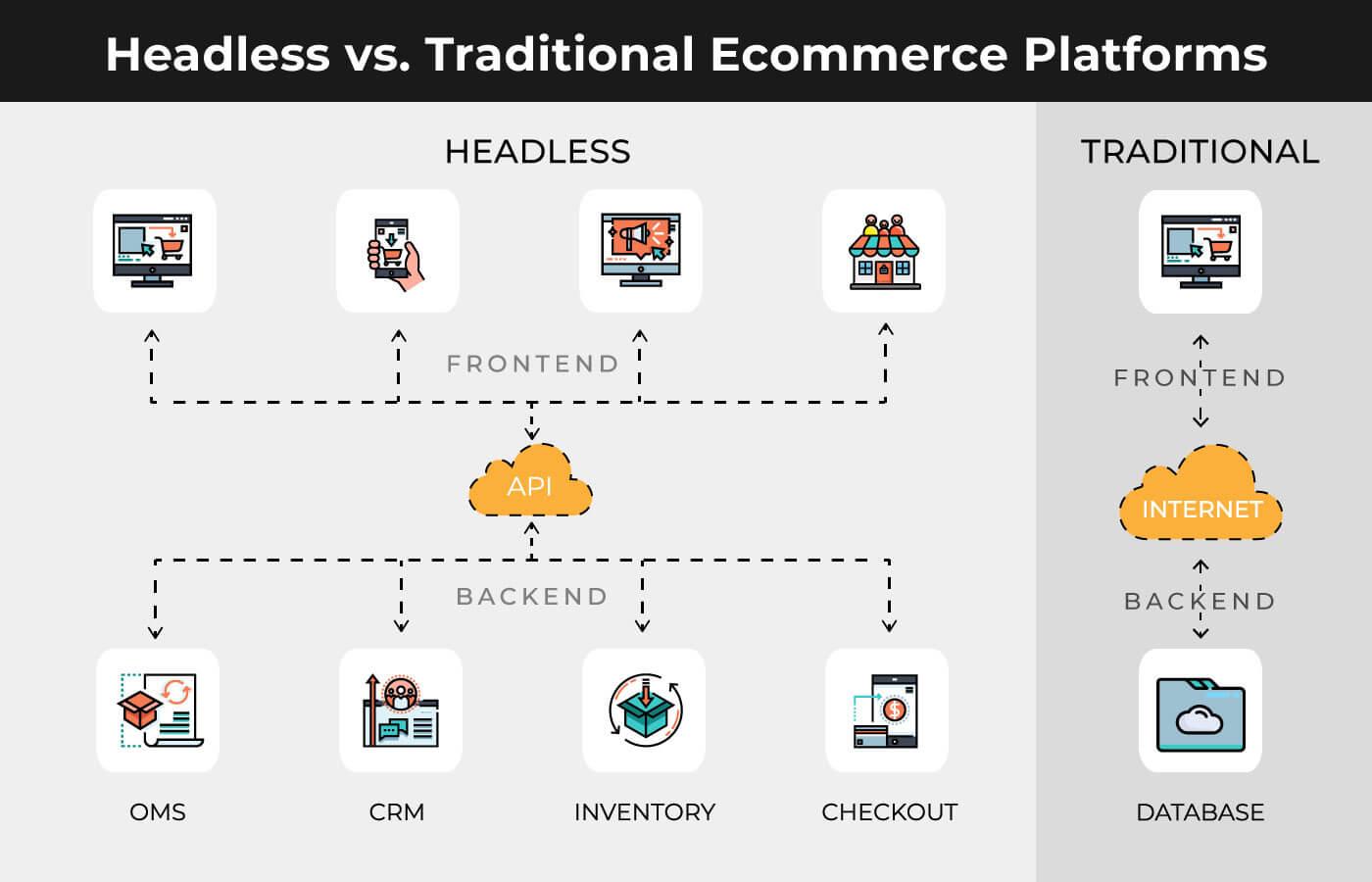 Headless ecommerce platforms are radically different from traditional platforms. Here are four crucial differences between traditional and headless ecommerce platforms that you need to know: