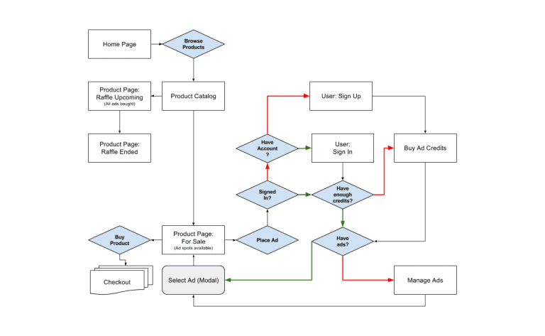 Here’s an example from a recent project of ours… we like both Draw.io and Google Draw as tools for quick flow charting.