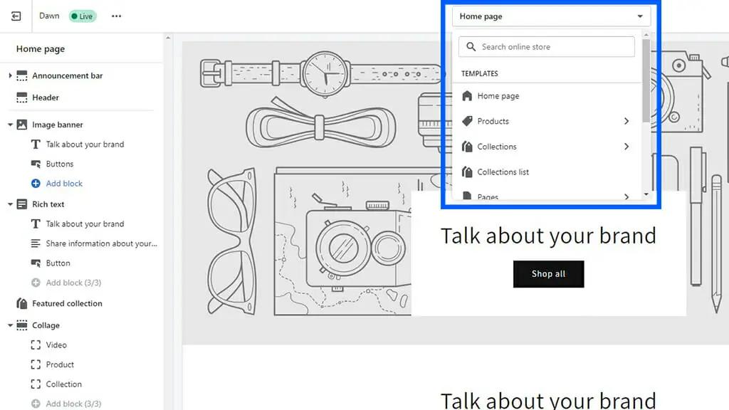Here’s how you can customize the different components of a Shopify theme using the online store editor: