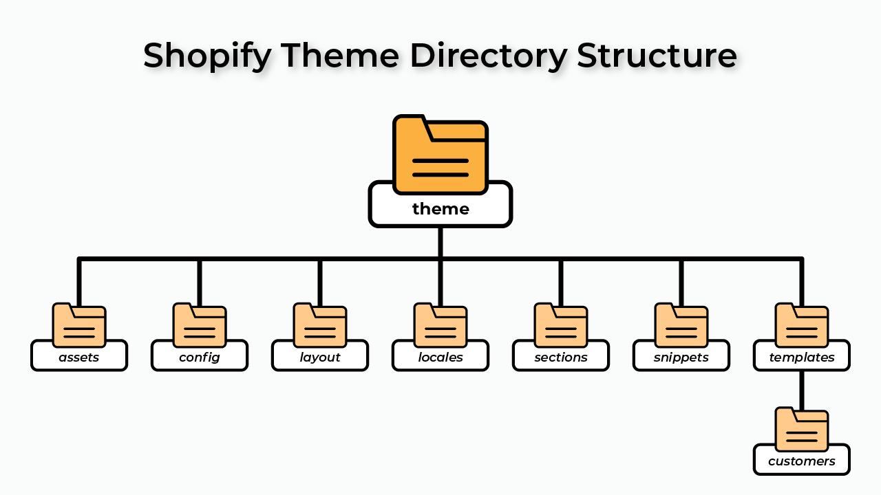 theme |— assets |— config |— layout |— locales |— sections |— snippets |— templates |— customers