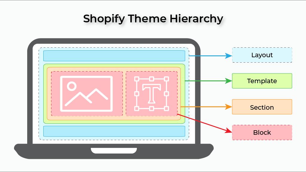 Shopify organizes everything into a logical hierarchy of layouts, templates, sections, and blocks that make it easy for you to customize content without touching a line of code. Their design helps you orient yourself within the Shopify theme architecture and customize it using the online theme editor.
