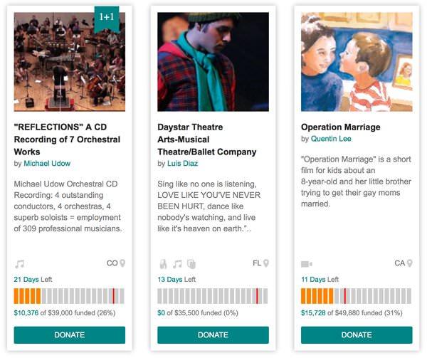 Another departure from most crowdfunding sites would be an ability for philanthropic organizations to match donations by individuals to a project. The matching organization would have the ability to designate financial parameters and set eligibility criteria (e.g., the discipline(s) of qualifying projects, geographical parameters, dollar amounts that would be matched, et al.). So “matching” would not only apply financially, but also to an artist and their project with a philanthropic organization.
